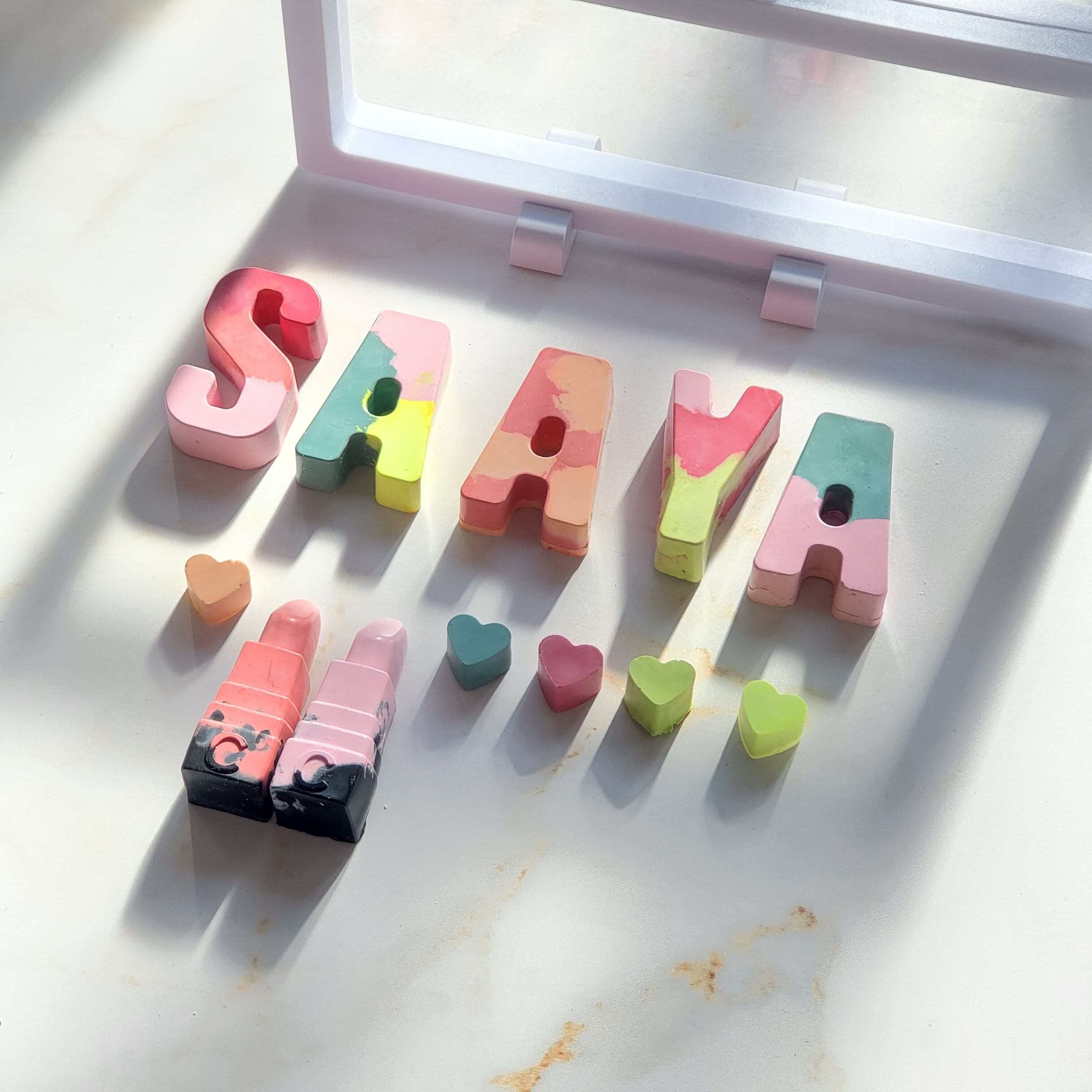 その他、クレヨンのかけらを入れたり、ドットなどの簡単な模様をペイントすることも可能です。(無料)